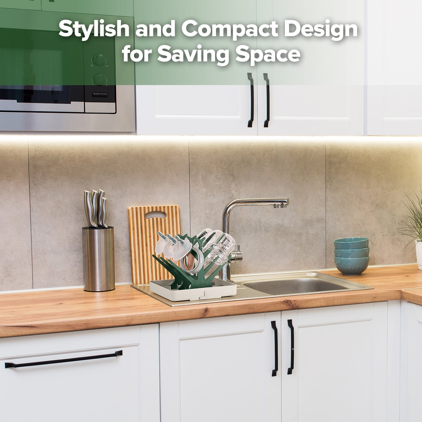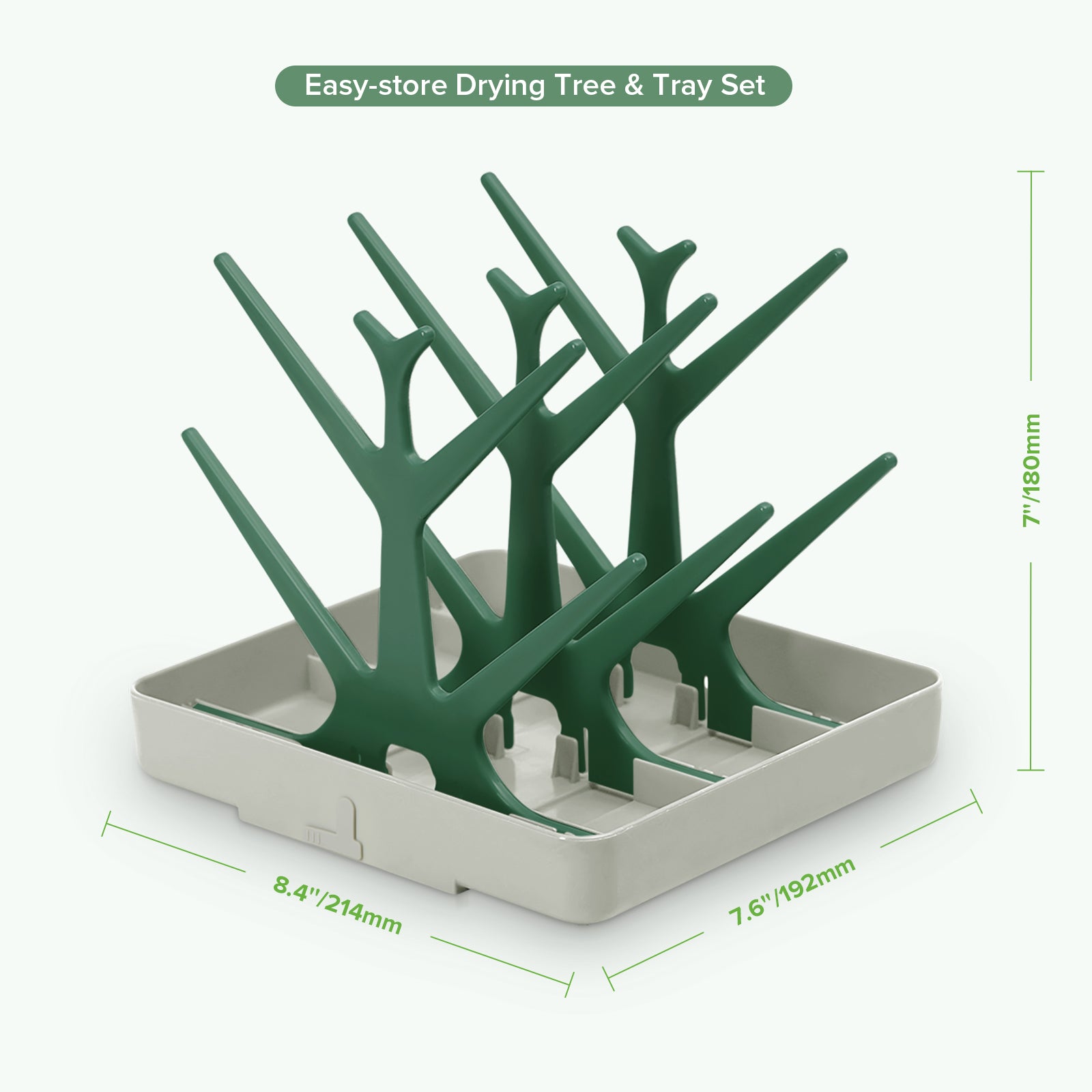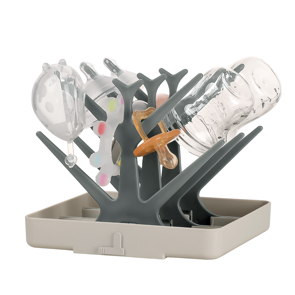 Dry your baby gear or everyday items with the Easy-store Drying Tree and Tray Set! Simply slot each of the three trees into the sturdy base, wash your bottles, dummies, pumps or any other everyday items, and hang them on the tree to air dry. The plug allows water to drain away with ease while the trees nestle into the base after use, making storage easier than ever.