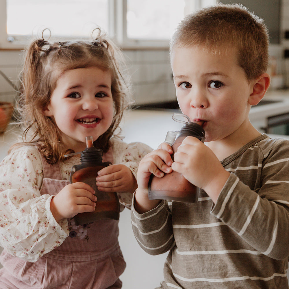 We've paired our Fresh Food Feeder & Silicone Nibble Tray Set with two Silicone Yummy Pouches + a handy silicone strap to give you everything you need for safe, mess-free feeding adventures. Whether you're starting baby-led weaning or preparing snacks for your little explorer on the go, this bundle has you sorted, AND you'll save by getting it all together!