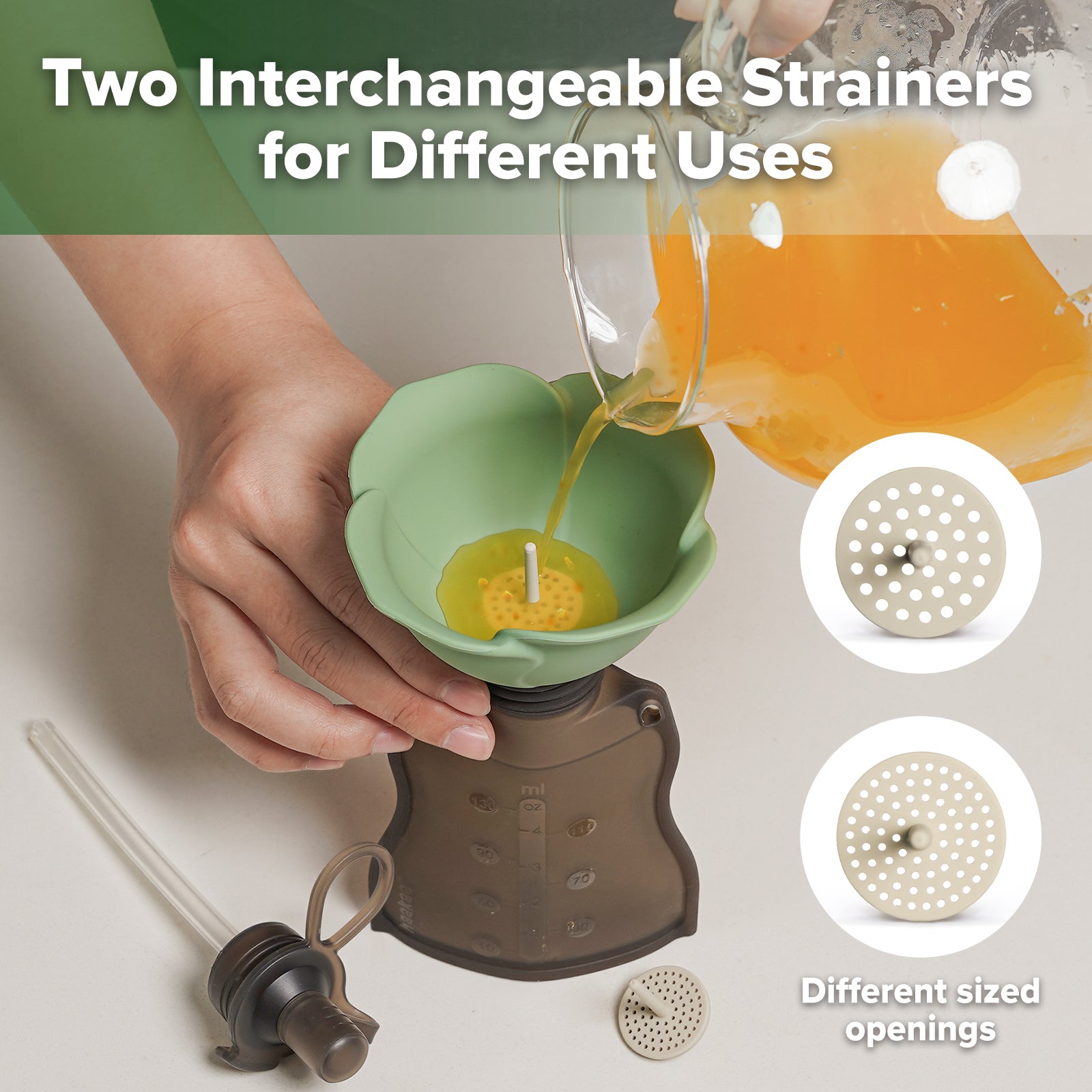 Enjoy snacks at home or out and about thanks to the Fill & Go Yummy Pouch & Flower Funnel Combo! Including two pouches plus our handy-dandy Silicone Flower Funnel and two detachable strainers to help filter those lumpier meals this combo makes it a breeze to get ready and head out the door. Each pouch comes with a sippy spout and straw letting your little one feed themselves at their own pace, building up those all-important independent self-feeding skills. The dedicated cleaning brush keeps the funnel stem clean and hygienic, while the pouch has a wide opening to let you quickly rinse and scrub it after use.