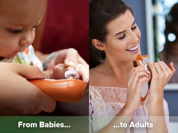Simply attach the trimmer pad suitable for your child's age and gradually file down their nails. The trimmer pads gently smooth your baby's nails without leaving sharp edges that may scratch their delicate skin. And best of all, the Clever Fox Nail Care Set is suitable for the whole family, from newborns to Mum and Dad.