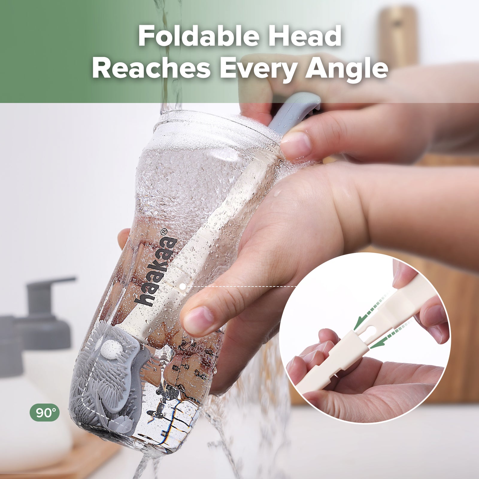 Keep every essential spotless wherever you go with Haakaa's Clean & Dry Travel Brush Set! This all-in-one travel cleaning set is designed to handle daily cleaning tasks, including everything from baby bottles and teats to straws and milk collectors with precision and ease. The bendable bottle brush head flexes for targeted cleaning and features an angled edge to tackle stubborn residue. A 360° brush head with a tapered tip adapts to a variety of sizes, and a simple clip transforms it into a long-handled brush for convenient extended reach.