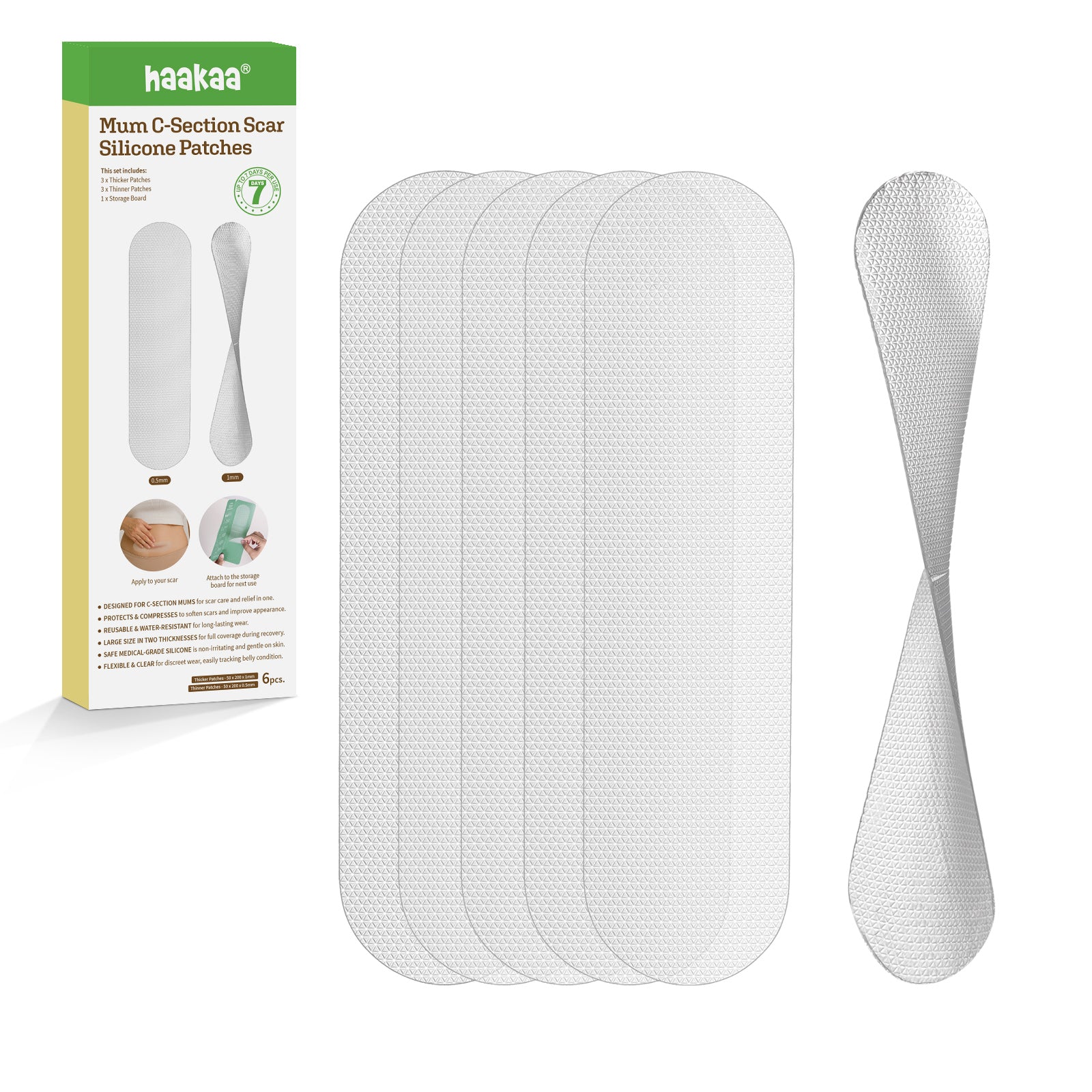 Experience gentle coverage and daily comfort for your post-C-section care with Haakaa's Mum C-Section Scar Silicone Patches. Each of these patches offers soft yet secure support to protect your incision as you recover. With two thickness options, the thicker patch provides light compression during early recovery, while the thinner one offers discreet wear for later care.