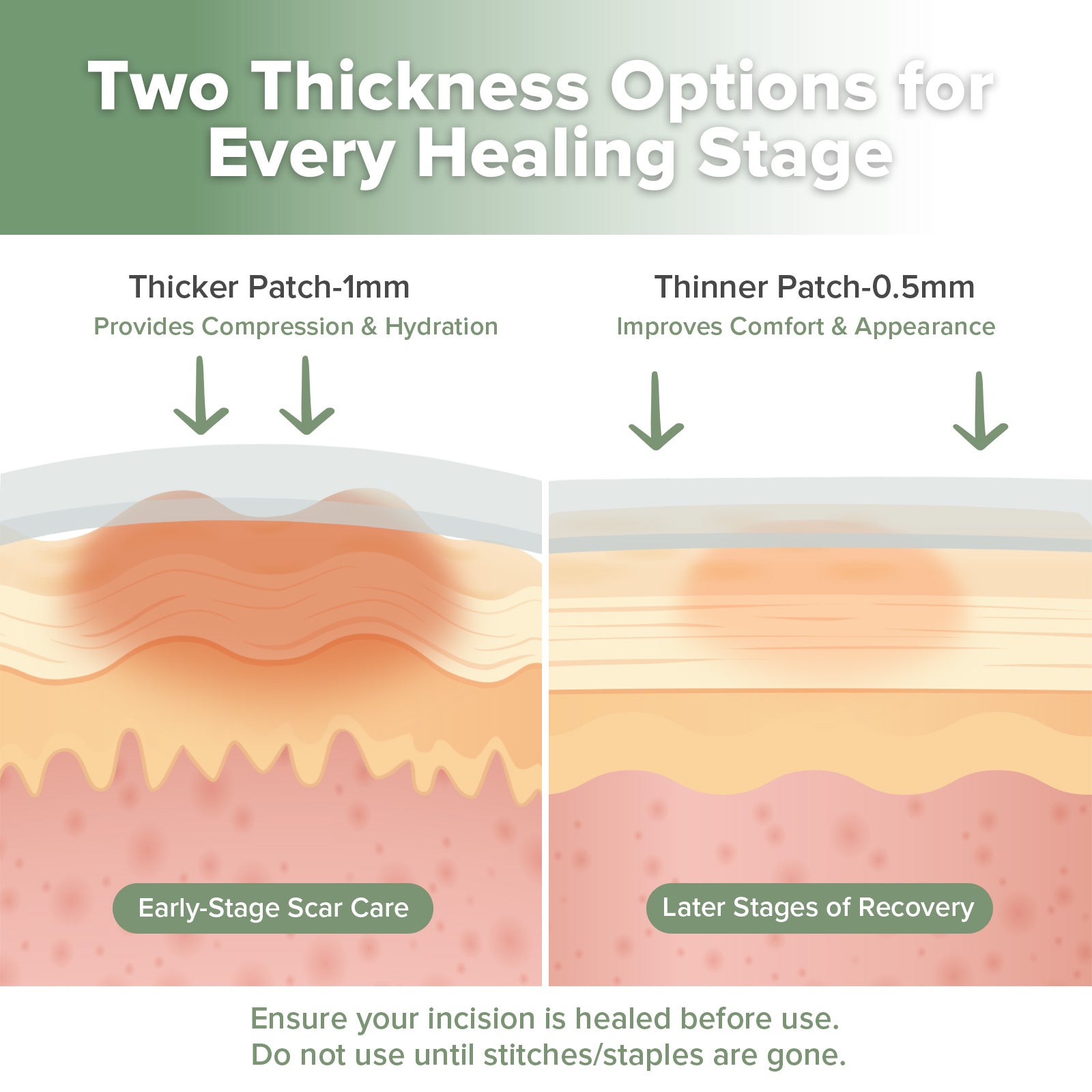Made from medical-grade silicone gel, each patch is individually wrapped, water-resistant, breathable, and reusable for up to 7 days. It helps to protect your scar from daily rubbing and offers compression even in the shower! They flex naturally with your body for a comfortable fit while keeping removal less irritating. The clear structure guarantees easy tracking of the healing process anytime. Each patch comes with a storage board to keep it hygienic and safe between uses, making them the cost-effective choice for your ongoing care.
