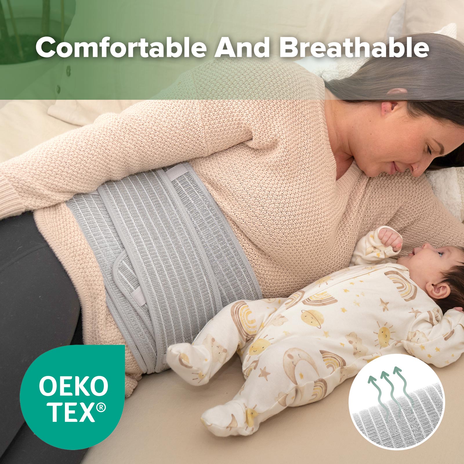 Support your belly and relieve back pain from pregnancy through to the postpartum period with the Haakaa Pregnancy & Postpartum Support Wrap. Featuring two separate bands, this wrap suits a wide variety of body shapes, sizes and needs. The narrow outer band supports your growing belly, helping relieve some of the burden on your back. The wider inner band is perfect to gently hold and reinforce your postpartum body, whether you delivered vaginally or via C-section. Support your belly, back, waist and abdomen throughout your pregnancy and postpartum journey in comfort with this amazingly soft and breathable support wrap.