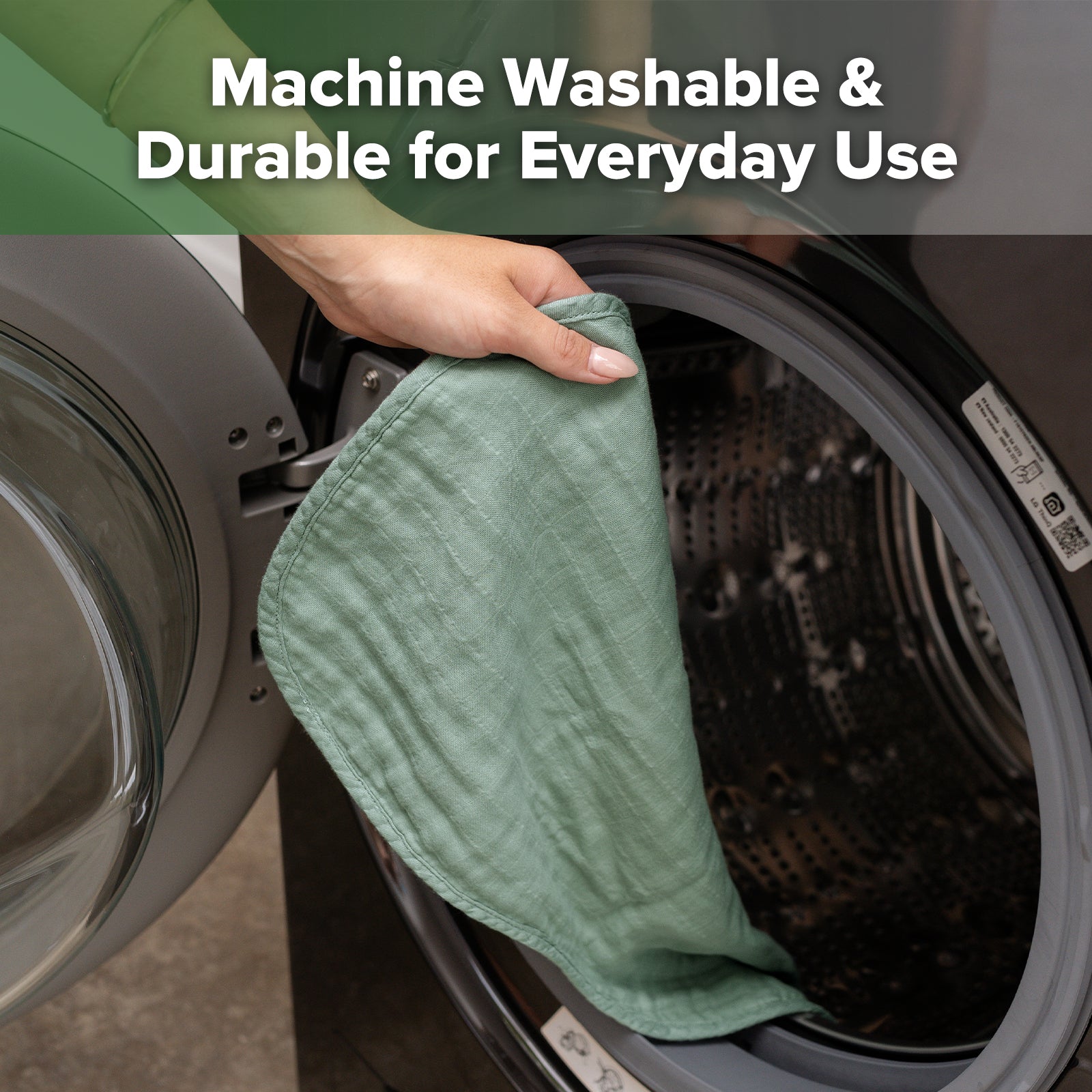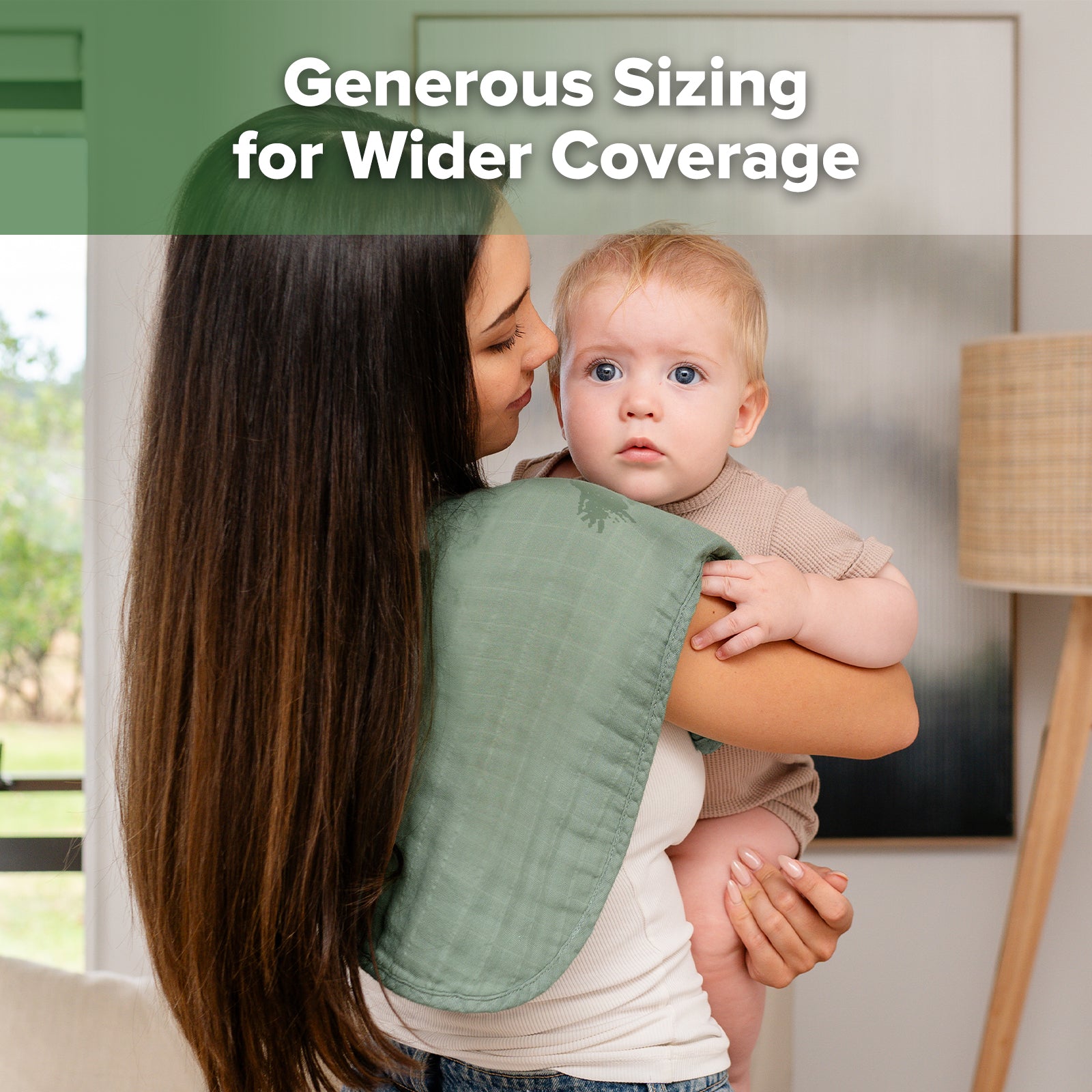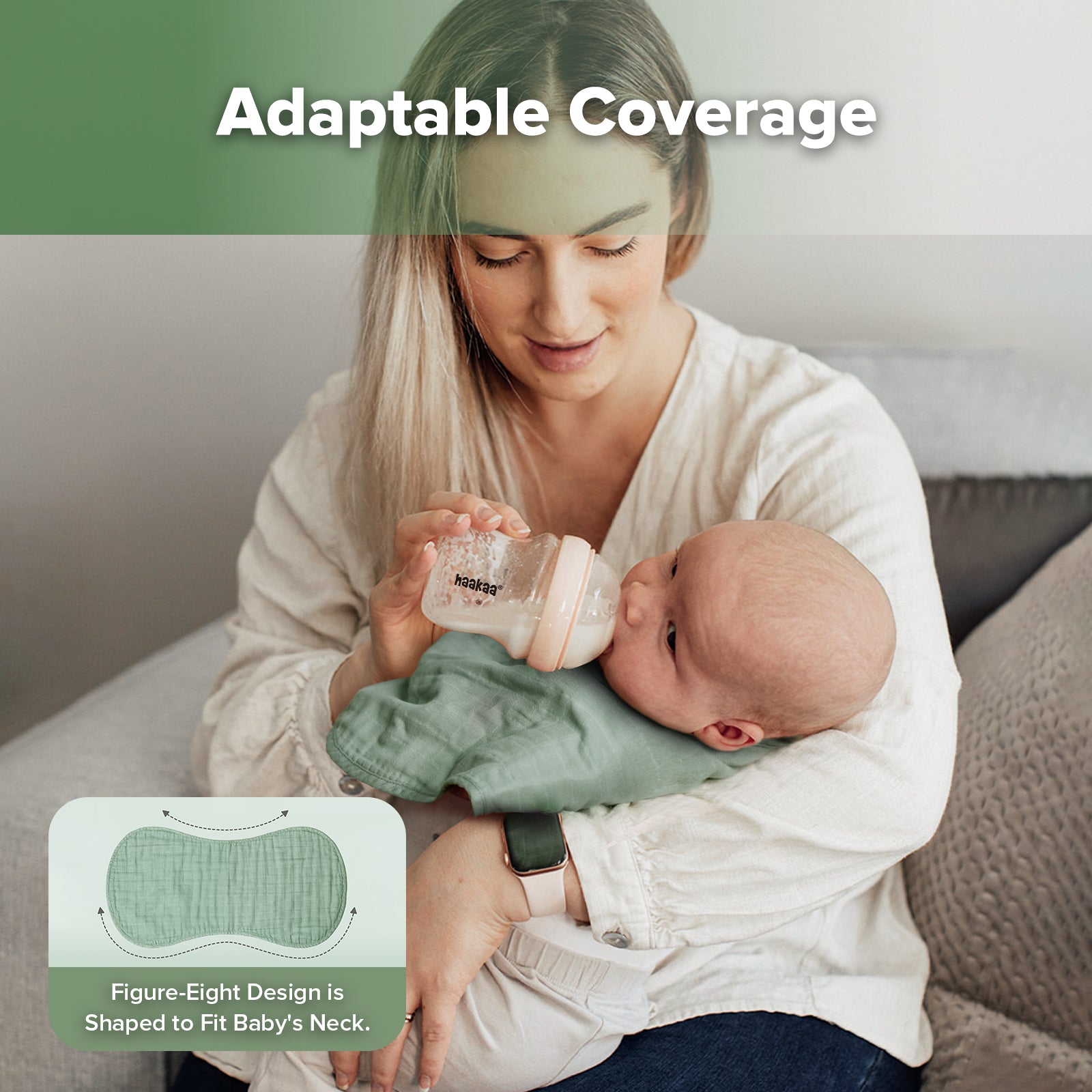 Haakaa's Organic Cotton Burp Cloths are the effective way to keep your clothes clean when burping your little one. Made of 100% organic cotton muslin in gorgeous nature-inspired colours, each cloth has a huge six layers of fabric, ensuring exceptional absorbency and cleanliness with every use. The unique curved shape gives extra-wide coverage, protecting more of your clothing, and is soft enough to clean your baby's face of any spit-up afterwards. Versatile enough to also be usedas a washcloth, bib, or more, the Haakaa Organic Burp Cloth is your easy-care, machine-washablebaby bag essential.