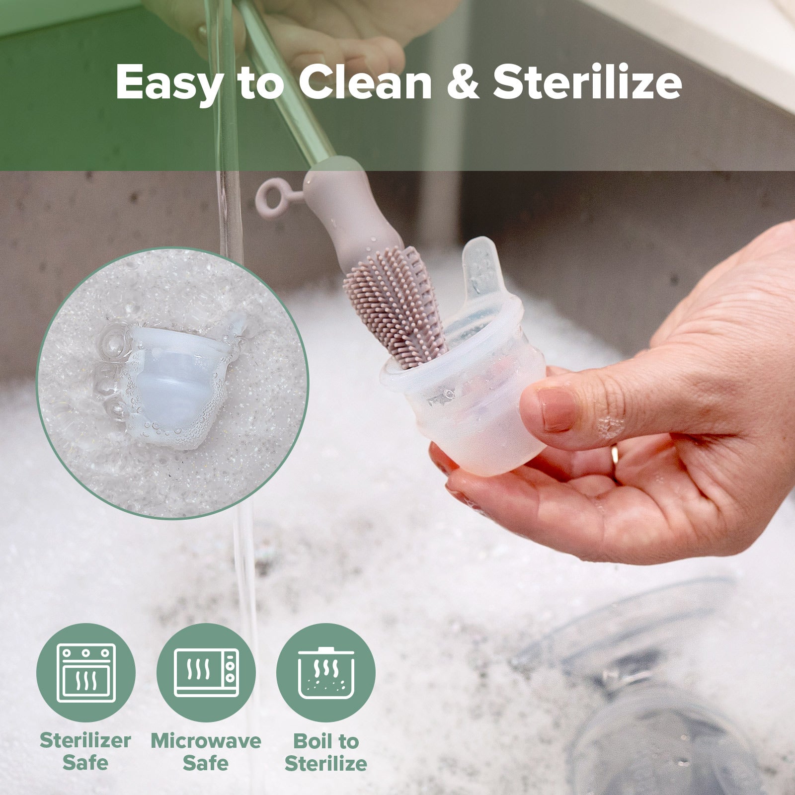 Do not use any bleach-based cleaners or tablets to sterilise or clean your Haakaa products. To sterilise, use a steam steriliser or boil in water for 2–3 minutes. Store product in a cool, dry place and avoid direct sunlight.