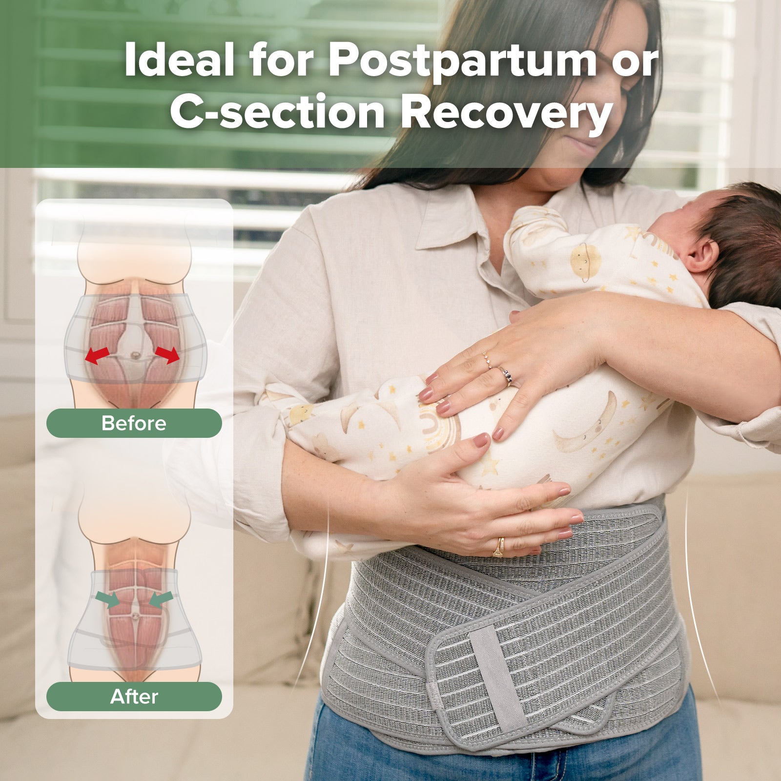 During pregnancy, your abdominal muscles separate to make room for your growing uterus. Belly binding after birth has been shown to help provide extra support while these muscles return to position. In some cases, it has even been shown to help reduce pain and discomfort during this recovery period. Haakaa's Postnatal Belly Belt contours to the curves of your body, comfortably strengthening your tender abdominal muscles and supporting your back for improved posture.Designed for day wear over your clothes, our belly belt applies firm, comfortable pressure on your abdomen to help reduce swelling, tighten your tummy, and keep all those wobbly bits in place. It easily adjusts to your changing postpartum body and is made from soft, breathable fabric with dual straps & smooth, sturdy edges for the ultimate in postpartum belly support. Available in three sizes, this belt is suitable for use after vaginal or C-section deliveries.
