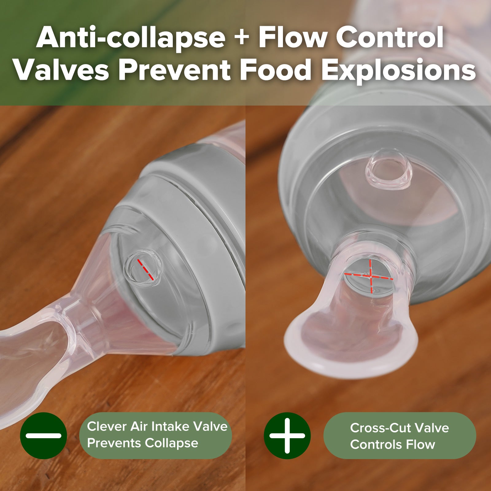 Simply fill the tube with baby food and pop on the lid. The food will remain inside the leakproof silicone tube until it's time for a snack. Remove the lid and gently squeeze the tube to dispense food onto the spoon. Once you've finished feeding your little one, put the lid back on and place it back in your bag!